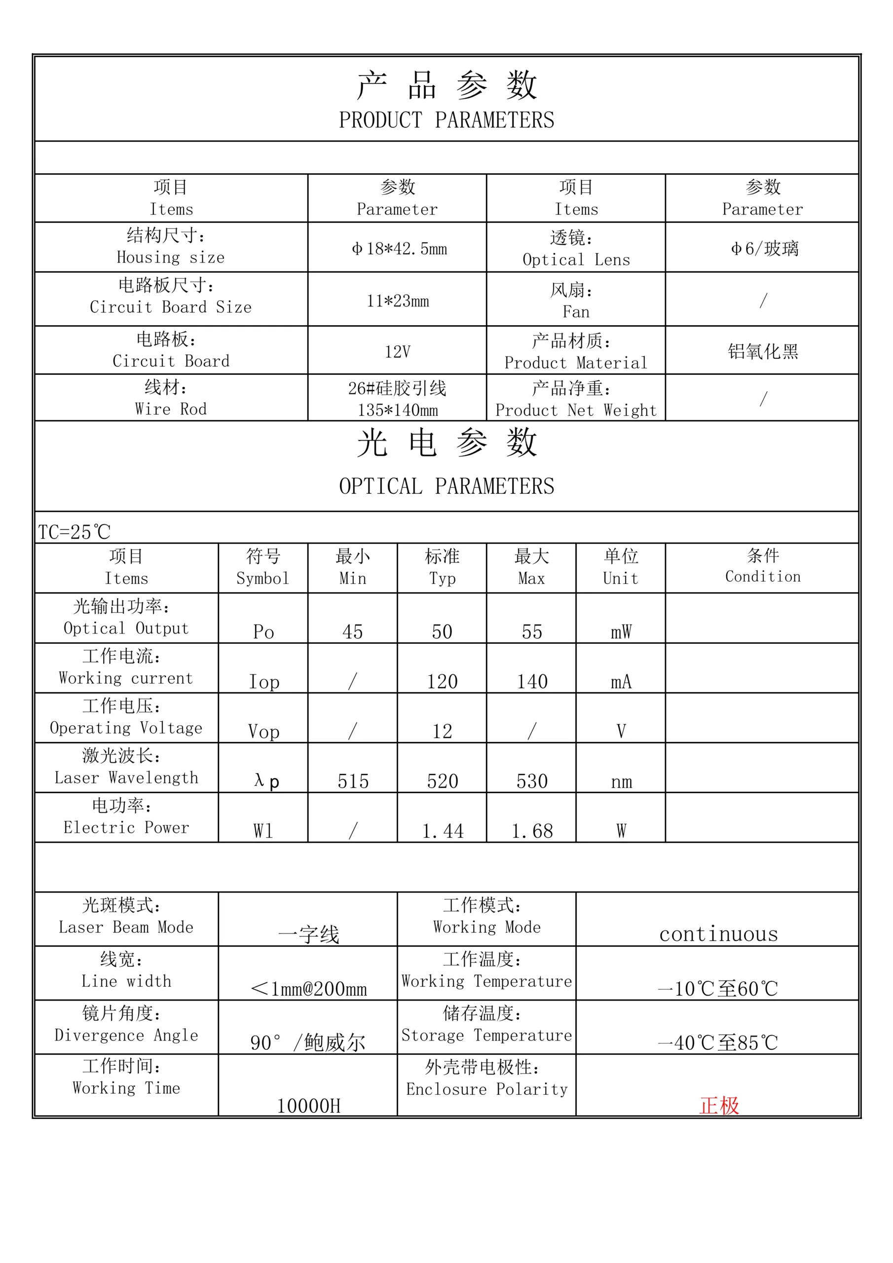 Be the first to review “520nm 50mW线激光模块”