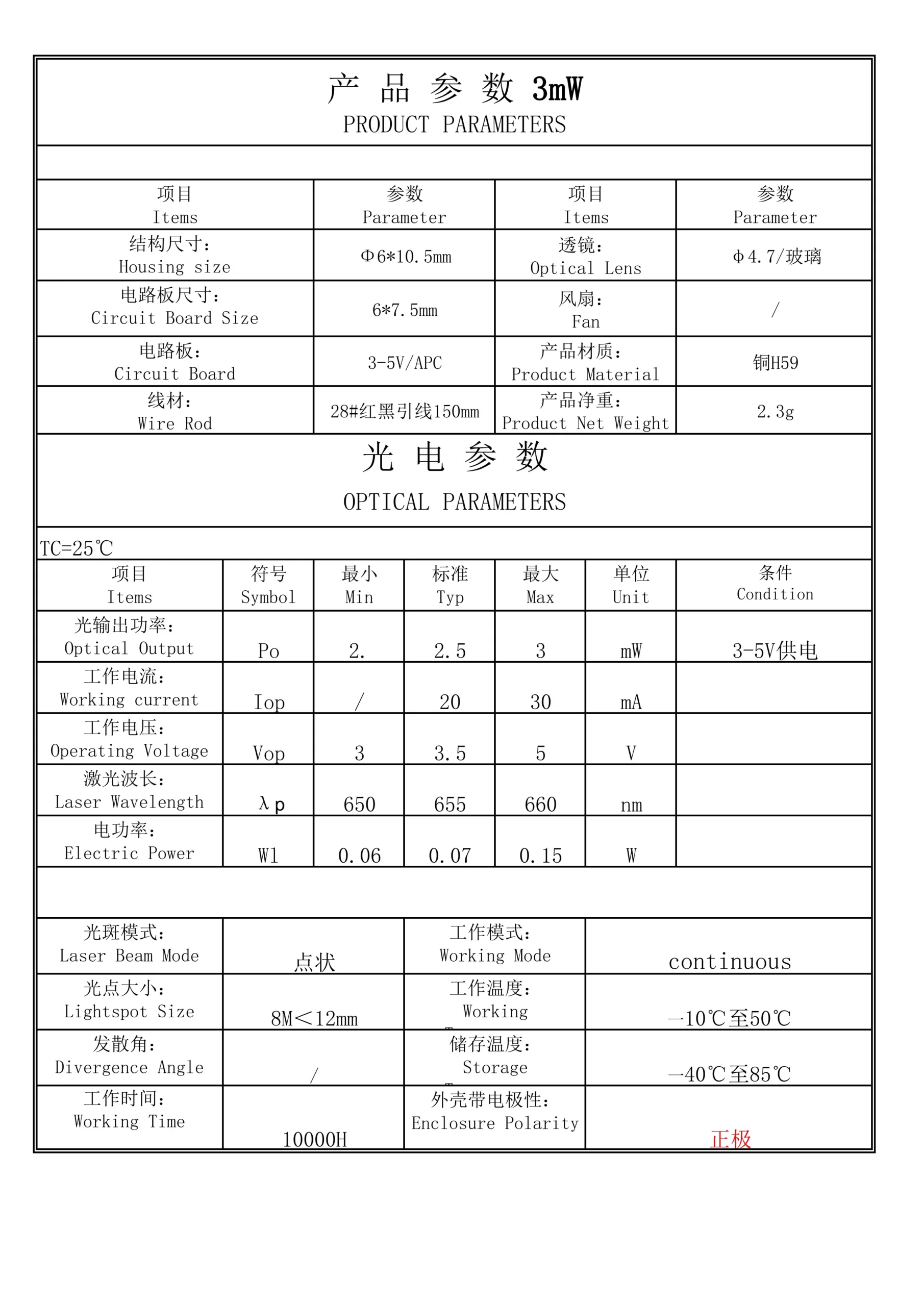 Be the first to review “650nm 5mW点激光模组”